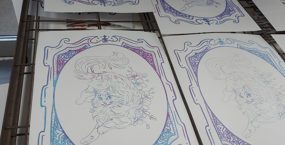 I was glad I experimented with screen printing regardless, as I enjoy working with traditional print methods a lot, especially with Greg, as he makes the experience a lot more fun. I felt like I needed a break from constantly creating digital as I was in a bit of an art block, so this was a fun and different way to express myself through artwork. I hope to be able to create more screenprints either for client work or just as a hobby, as I love the overall look of screenprints and the textures and colours it produces.